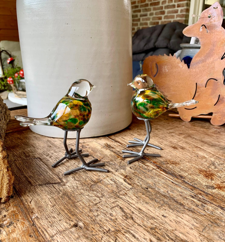 Vogel op steen (Geheel van glas!)
