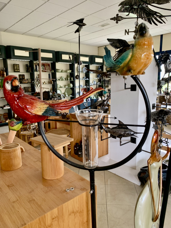Regenmeterboog van RVS, op tuinsteker met een regenmeter glas